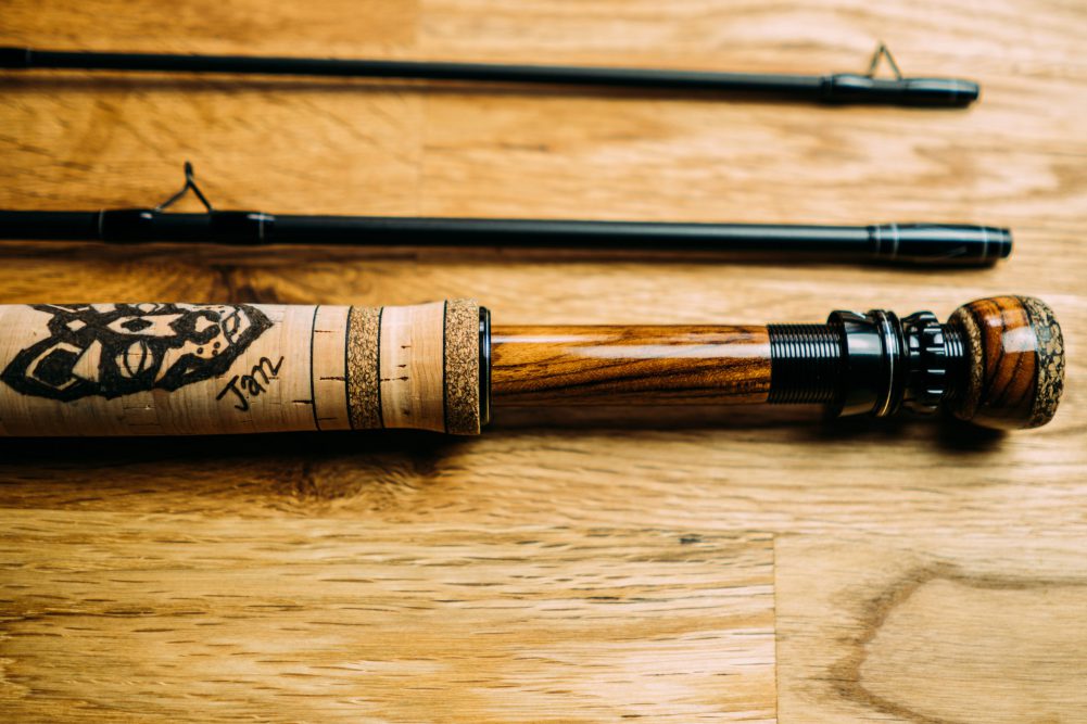 Jan’s Rute ist eine Klasse 5 in 9 ft. und matt schwarzem Finish. Der Aufbau war für mich schnell klar: Holz musste dabei sein, wenig Farbe, aber doch versteckte Details wie das Feeder Inlay. Eine Rute, wie sie mir passend erschien für einen Schweden Auswanderer und Hundeschlitten-Führer.