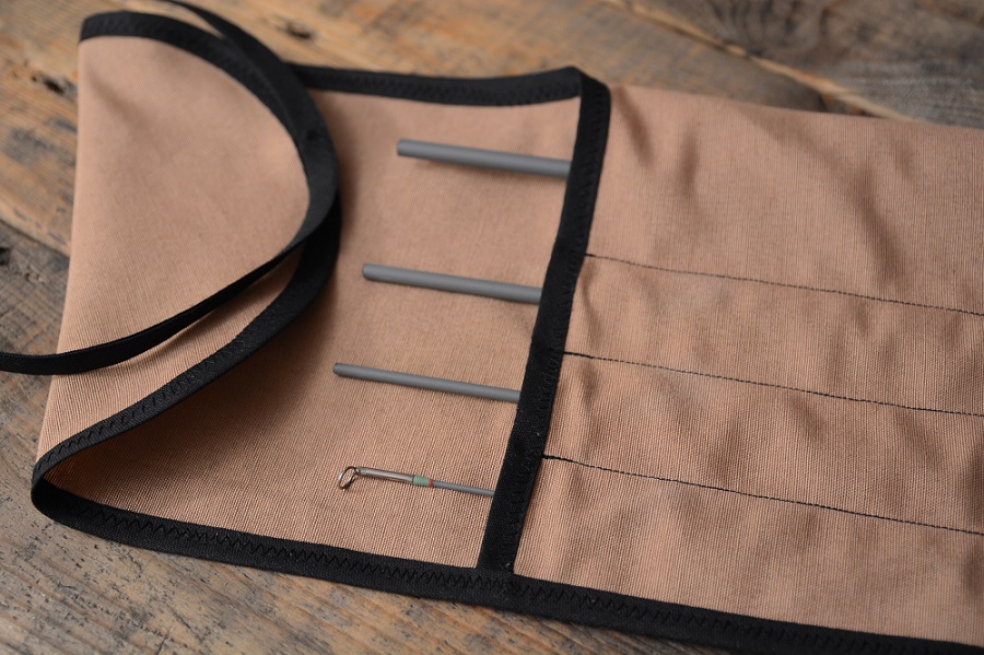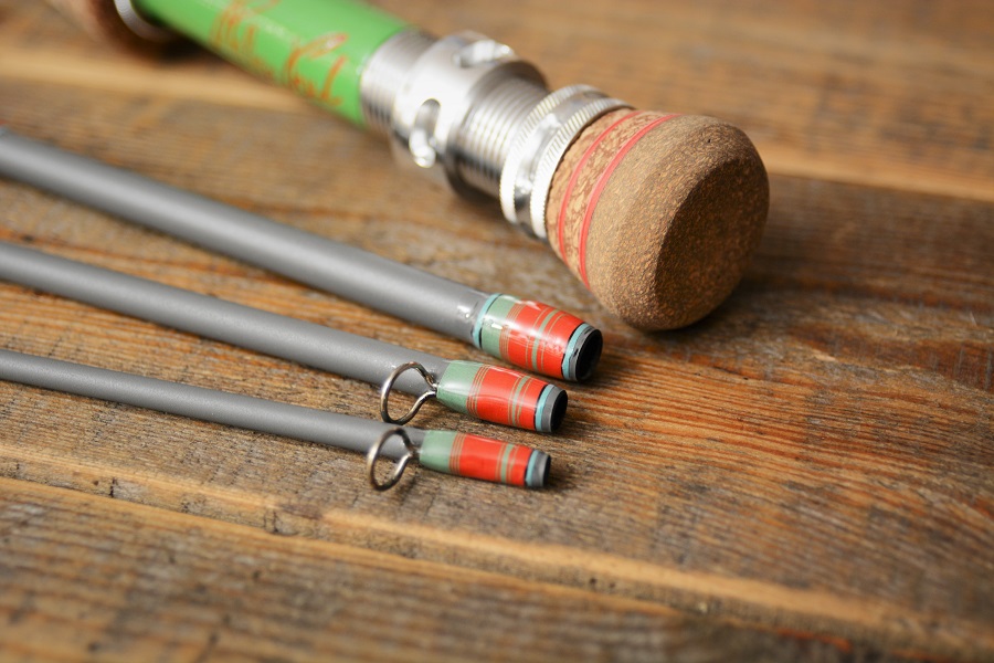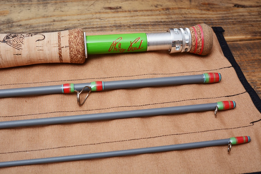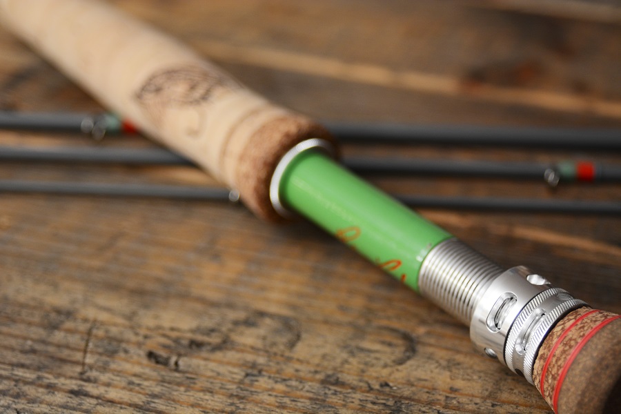 Besonders sind neben den Farben aber auch die gravierte Signatur des Besitzers auf dem Spacer des Rollenhalters und die Hakenöse aud der Unterseite des Korkgriffs. Zum sicheren und korkschonende Einhängen der Fliege auf dem Weg von Spot zu Spot.