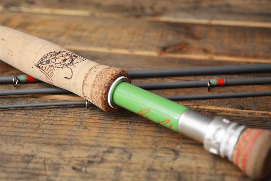 Special on this rod is not only the colour design, but also the engraved customer signature on the reel seat spacer as well as the fly holder on the downside of the cork handle.